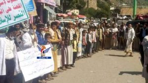 وفي محافظة ريمة نظم أبناء المربع الغربي بمديرية الجبين اليوم الأحد، وقفة احتجاجية للتنديد بقرار الإدارة الأمريكية تصنيف “أنصار الله” منظمة إرهابية.