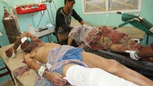 كما استشهد اليوم الجمعة 5 مواطنين و 11 جريح جراء غارتين لطيران العدوان السعودي الأمريكي استهدفت سيارتهم بمحافظة صعدة .