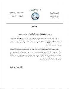 وبهذا الإنجاز نؤكد لشعبنا العظيم أن ما يردده العدو من تدمير منصات الصواريخ الباليستية لا يعكس إلا إفلاساً وتخبطاً أمام كل هذه الإنجازات المستمرة ، وعليه إدراك أن كل منصات الصواريخ الباليستية بعيدة جداً من أن تنالها طائراته، التي لا يجيد بها إلا ارتكاب المجازر وقتل النساء والأطفال وتدمير مؤسسات الدولة ومصالح الشعب.