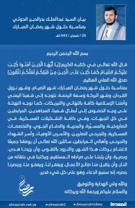 وحث السيد عبدالملك على اغتنام بركات شهر رمضان والتزود بالتقوى.