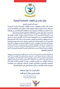 وفي بيان عسكري لها مساء اليوم الجمعة، قال متحدث القوات المسلحة العميد يحيى سريع: إن السفينة النفطية خالفت القرار الصادر عن الجهات المختصة بحظر نقل وتصدير المشتقات النفطية السيادية اليمنية.