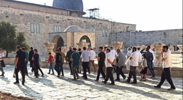 عشرات المغتصبين اليهود يؤدون طقوسا استفزازية في باحات الأقصى المبارك